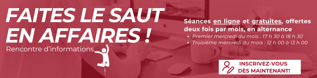 Nous vous offrons des programmes d’aide ainsi que le support technique pour assurer la mise en œuvre de votre projet d’affaires.